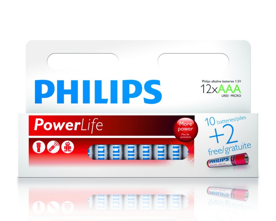 Philips bietet ein umfassendes Sortiment der gängigsten Batterien (AA, AAA, C, D, 9V) in verschiedenen Packungsgrößen für all Ihre Bedürfnisse.